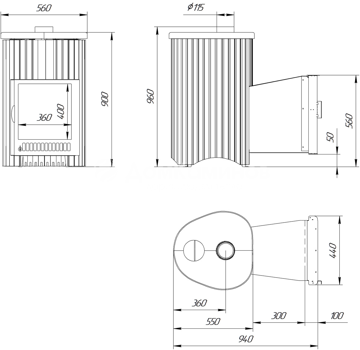 Колосниковая решетка в этой печи для бани на дровах отсутствует. Заложенные дрова разжигают сверху. Не имея над собой препятствий, огонь сразу передает тепло каменке. Пламя постепенно спускается, каждый слой дров прогорает полностью. Система Vortex создает вихревые газовые потоки, не дает пламени подниматься в дымоход. Такие инженерные решения обеспечивают печи высокий КПД, топливо расходуется экономно и эффективно.