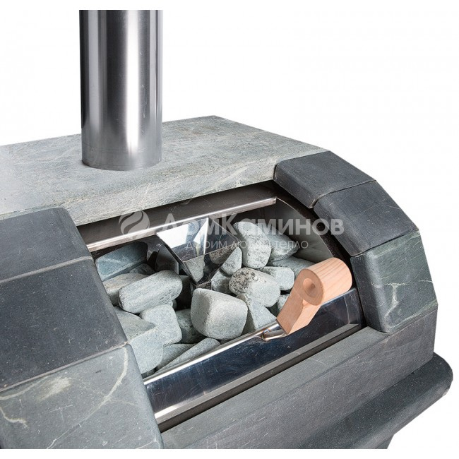 - вместительная закрытая каменка специальной конструкции из нержавеющей стали с поступательно-вращательным движением дверцы;