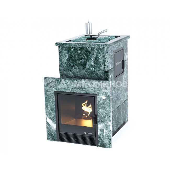 С терморегулирующей задвижкой, позволяющей максимально рационально использовать тепловую энергию и разогревать камни до температур 550-650 °C.