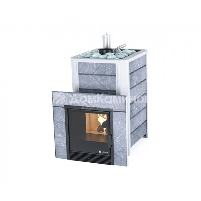 С терморегулирующей задвижкой, позволяющей максимально рационально использовать тепловую энергию и разогревать камни до температур 550-650 °C.