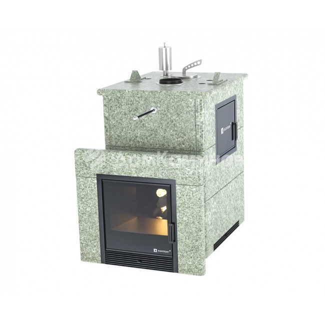 С терморегулирующей задвижкой, позволяющей максимально рационально использовать тепловую энергию и разогревать камни до температур 550-650 °C.