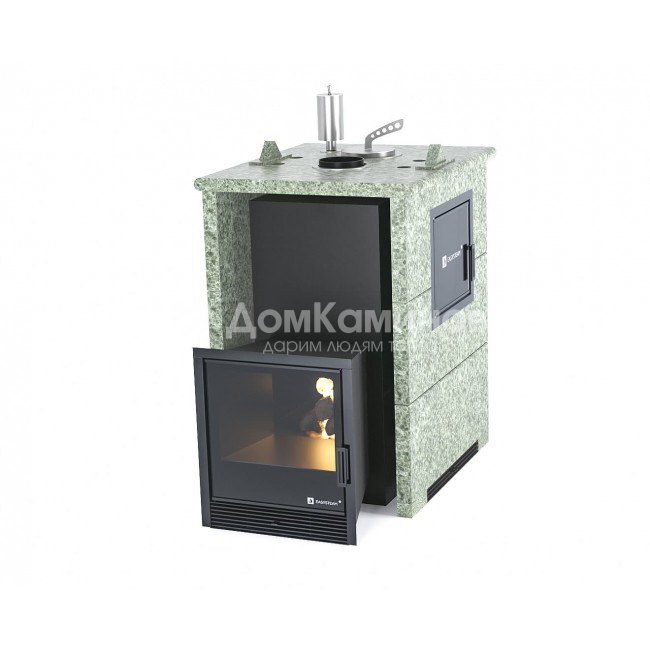С терморегулирующей задвижкой, позволяющей максимально рационально использовать тепловую энергию и разогревать камни до температур 550-650 °C.