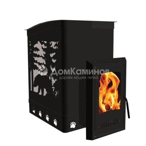 Печь банная чугунная Экокамин Медведь 30 Медведь в лесу, дверка стекло Оптима, открытая каменка