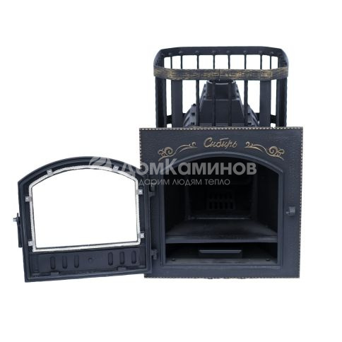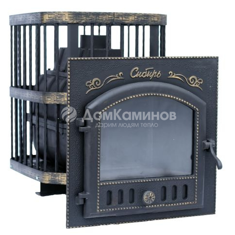 Чугунная банная печь НМК Сибирь-24 каминная дверца (сетка)