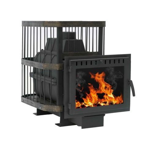 Чугунная банная печь НМК Сибирь-24 панорамная дверца (сетка)