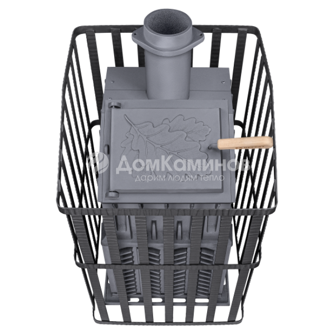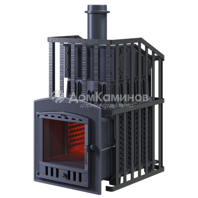 Печь легко модернизируется до полноценной печи предназначенной для Русской бани путем замены стальной сетки на каменную облицовку без демонтажа дымохода.