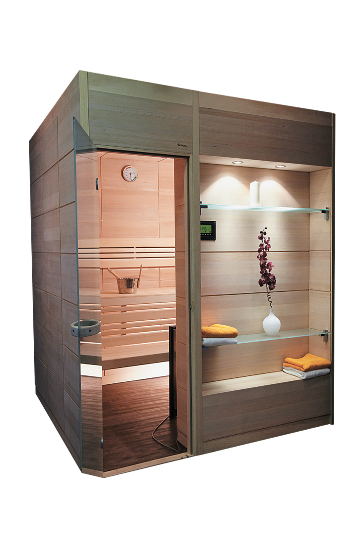 Сборная сауна Модерн - это отличное решение для сауны в квартире или в доме, так как он не требует отдельного помещения. Вы можете поставить такую сауну кабину в ванной комнате, в коридоре или вместо гардеробной. Сауна кабина Модернизготавливается в Новосибирске из панелей Rohol Хемлок, толщина стен 64 мм. При этом, внешние фасады так же исполнены из панелей Rohol, что придает сауне стильный внешний вид. Такую домашнюю сауну даже не хочется прятать в подсобном помещении, она прекрасно впишется в интерьер городской квартиры или дома.