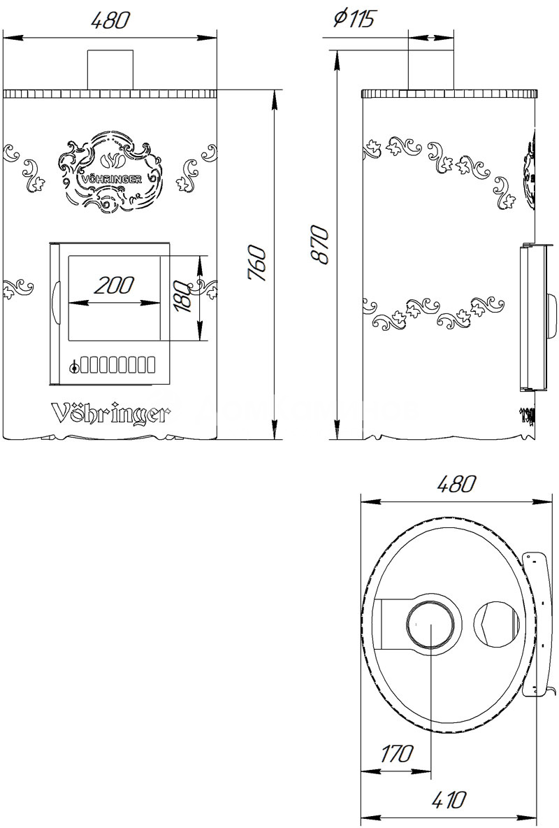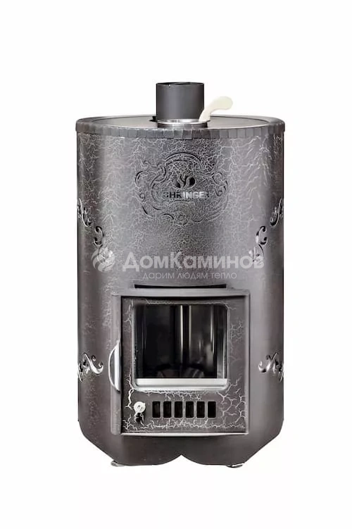 Колосниковая решетка в этой печи для бани на дровах отсутствует. Заложенные дрова разжигают сверху. Не имея над собой препятствий, огонь сразу передает тепло каменке. Пламя постепенно спускается, каждый слой дров прогорает полностью. Система Vortex создает вихревые газовые потоки, не дает пламени подниматься в дымоход. Такие инженерные решения обеспечивают печи высокий КПД, топливо расходуется экономно и эффективно.