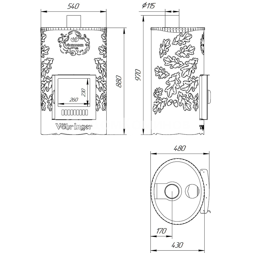 Описание Дровяная печь Ферингер Уют-25 ПФ в кожухе Лайн, до 25 м³