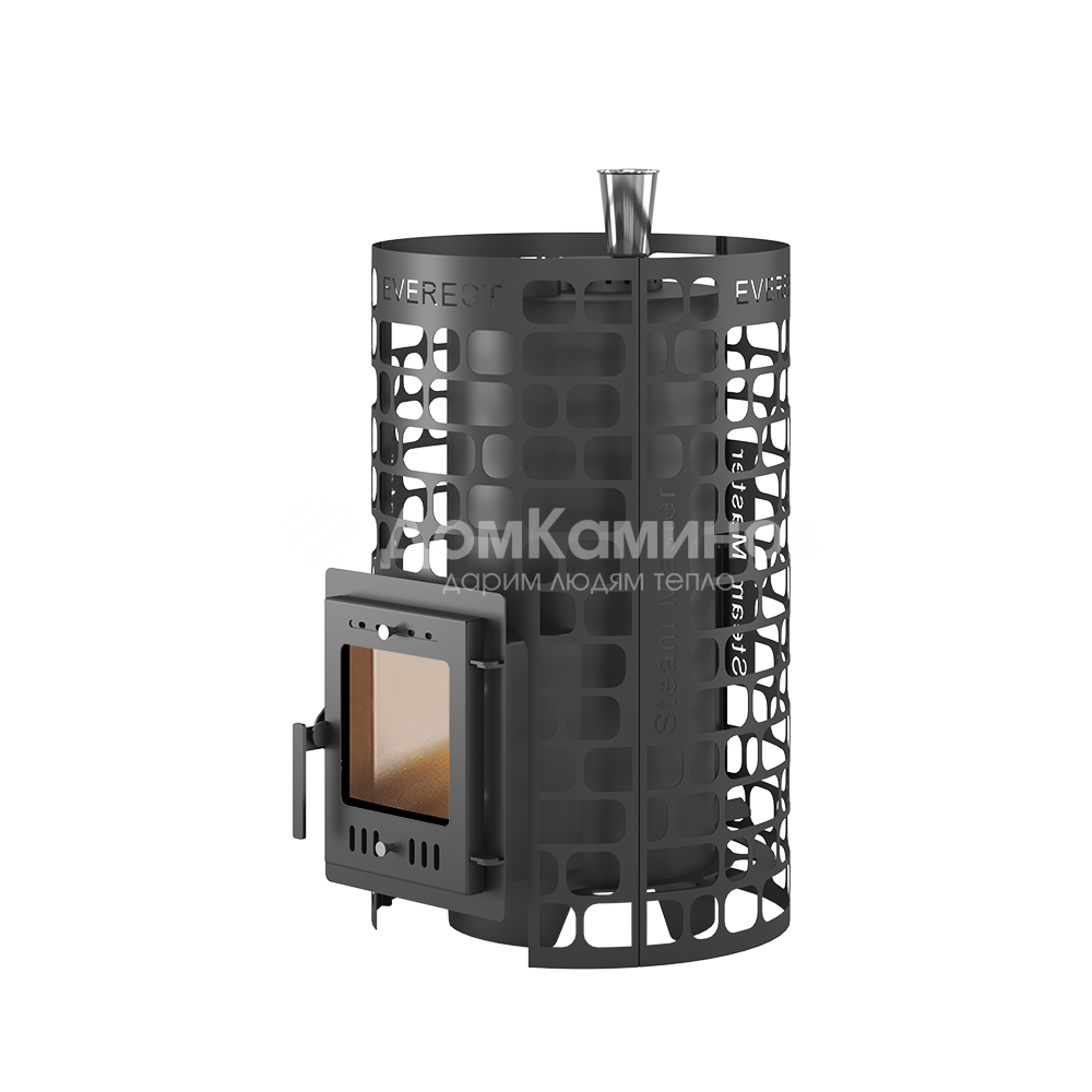Внешний тепловой контур образован открытой каменкой в виде цилиндрической сетки, вмещающей в себя 120 килограммов камней. Сетка сделана из стали, в новом минималистичном дизайне EVEREST.