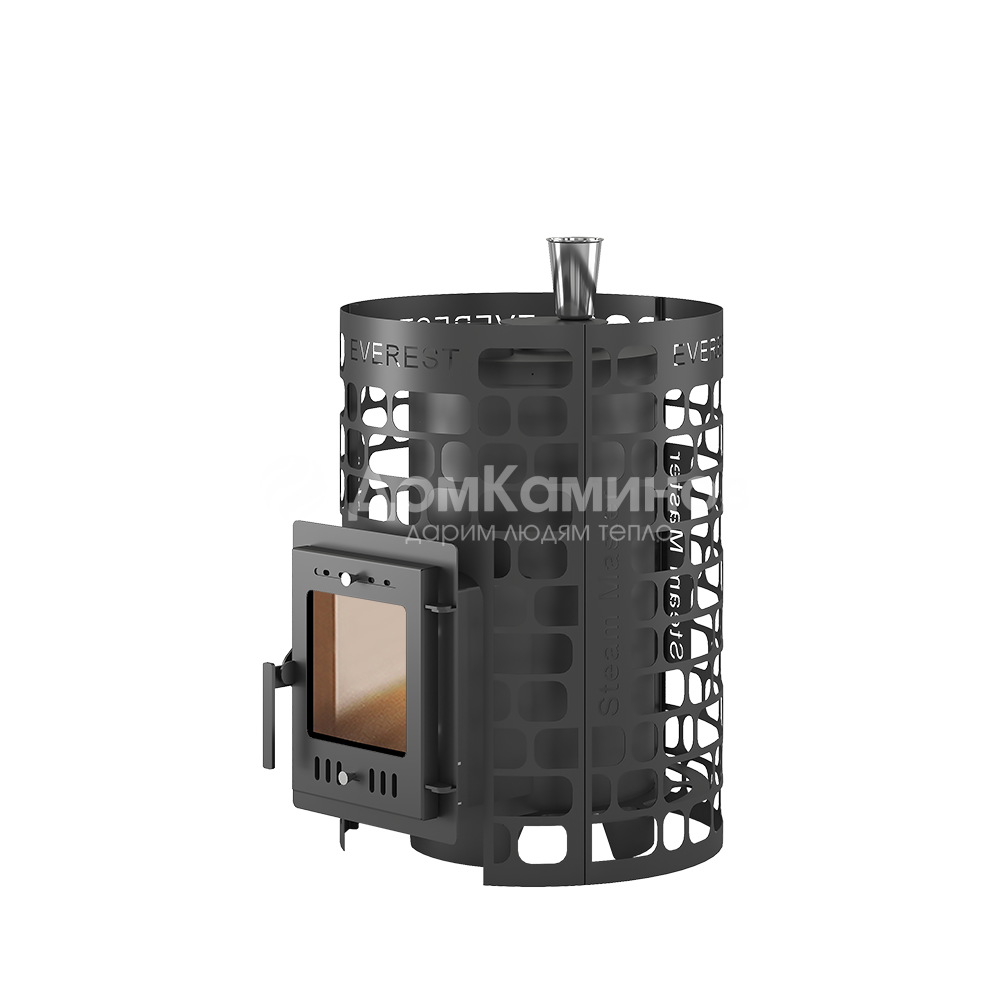 Внешний тепловой контур образован открытой каменкой в виде цилиндрической сетки, вмещающей в себя 100 килограммов камней. Сетка сделана из стали, в новом минималистичном дизайне EVEREST.