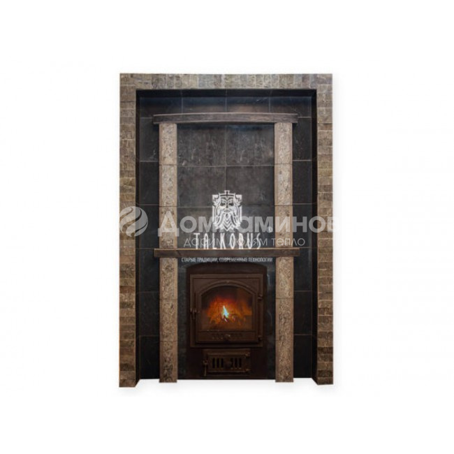 Портал в баню «Старорус» выполнен из талькового камня с декоративными элементами из «рваного (дикого) камня», данное изделие относится к премиум классу.