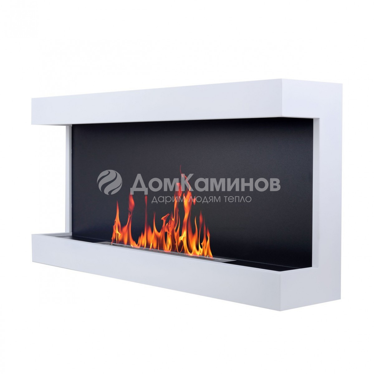 Настенный биокамин выполнен из нержавеющей стали толщиной 1-2 мм и окрашен в белый цвет. Комплектуется топливным блоком 800 мм из нержавеющей стали. Специальный наполнитель предотвращает розлив топлива при опрокидывании, что делает биокамин пожаробезопасным при эксплуатации. Не требует подключения к дымоходу.
