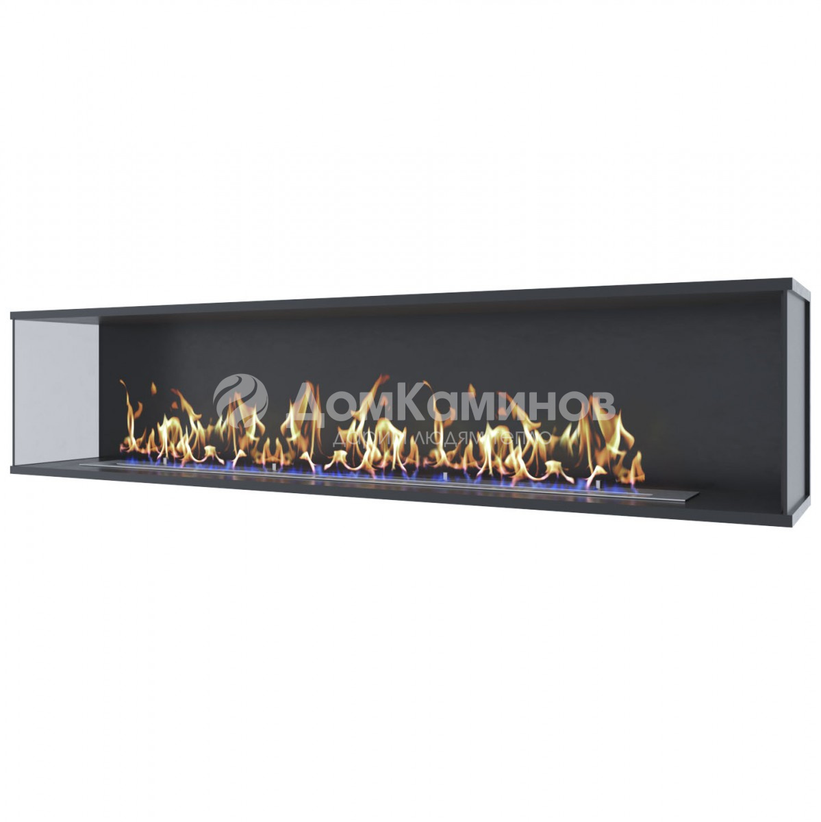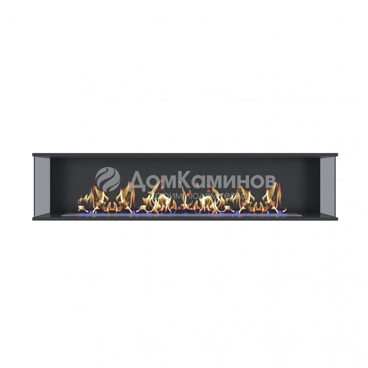 Биокамин изготовлен из термоустойчивой стали толщиной 2 мм и покрашен в черный цвет. Биокамин комплектуется защитным экраном с трех сторон из закаленного стела толщиной 6 мм и топливным блоком из нержавеющей шлифованной стали толщиной 4 мм с возможностью регулировки высоты пламени.