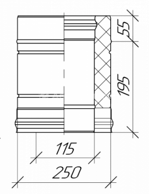 Основной элемент, используется для набора требуемой длины утепленного дымового канала. Подходит для отопительных приборов с высокой температурой уходящих дымовых газов (банные печи, стальные печи-камины и др.)