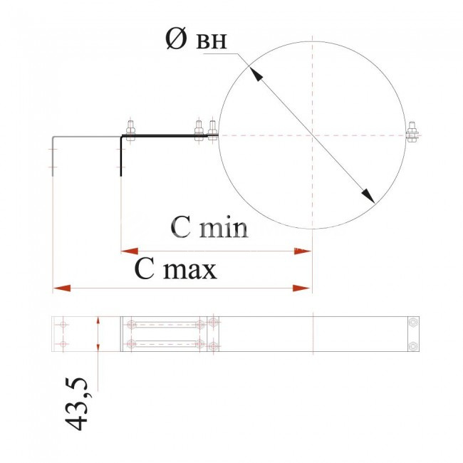 Хомут крепления к стене без изоляции. Изготовлен из нержавеющей стали AISI 439.