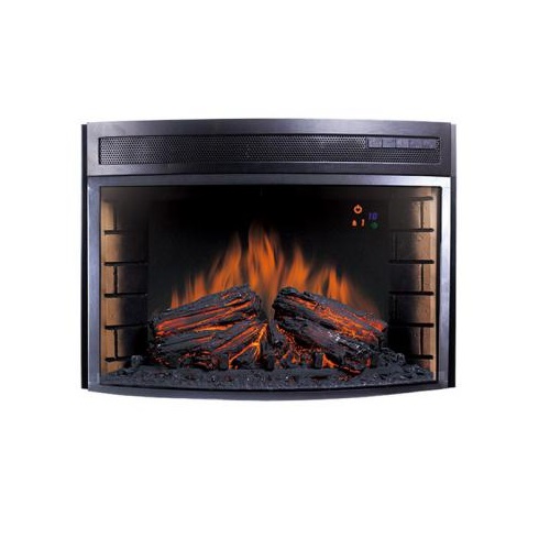 Электрический очаг с закругленным стеклом и со звуком создает эффект настоящего камина
