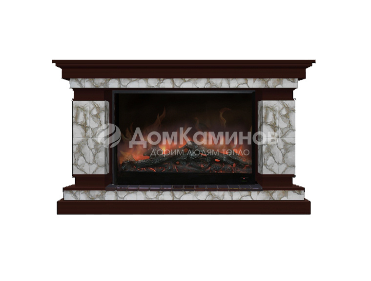 Электрокамин для квартиры или загородного дома, прекрасно подойдет и украсит ваш зал, холл или гостиную. Великолепно будет выглядеть в кабинете вашего шефа или вашем кабинете. Электрокамин производится на фабрике «Гленрич» из МДФ со шпоном дуба, красного дерева или ореха. Стандартный цвет покраса - дуб 46, красное дерево или венге, остальные цвета окраса можно заказать по таблице цветов. Для декора электрического камина используется искусственный камень серии «Карелия», изготовленный и расписанный вручную художниками-декораторами нашего цеха. В электрокамин встраивается электротопка «Premier S10», в комплекте имеется пульт ДУ. Электротопка имеет яркий эффект горения дров в очаге камина. Цена указана за комплект портал + электротопка.