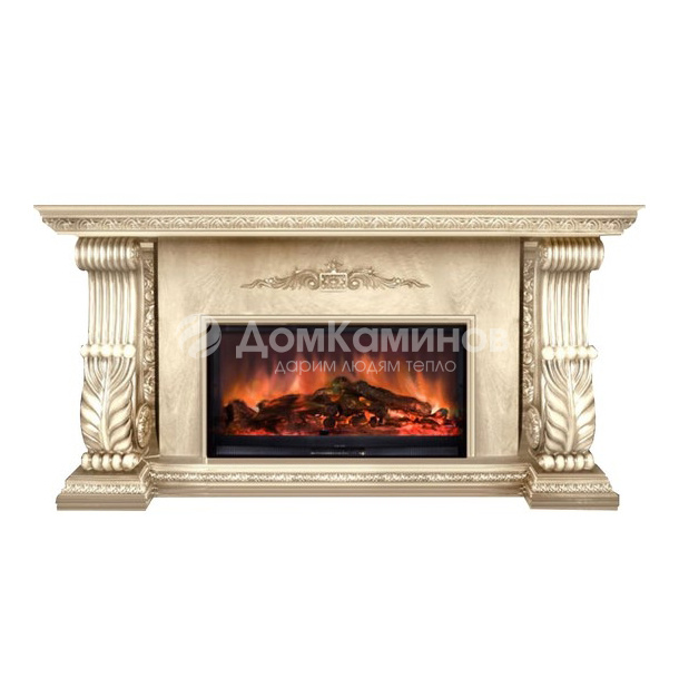 Великолепный классический электрический камин. Украшен традиционным классическим декором. Этот камин электрический прекрасно подойдет для вашей гостиной или холла. Фриз под каминной полкой камина украшен резьбой в виде цветочного орнамента. Каминные колонны декорированы спускающимся по ним цветочным рисунком. Боковые колонны каминного портала оформлены резным рисунком и украшены грациозными завитками в виде акантовых листьев, изображения которых часто используются в античном искусстве.