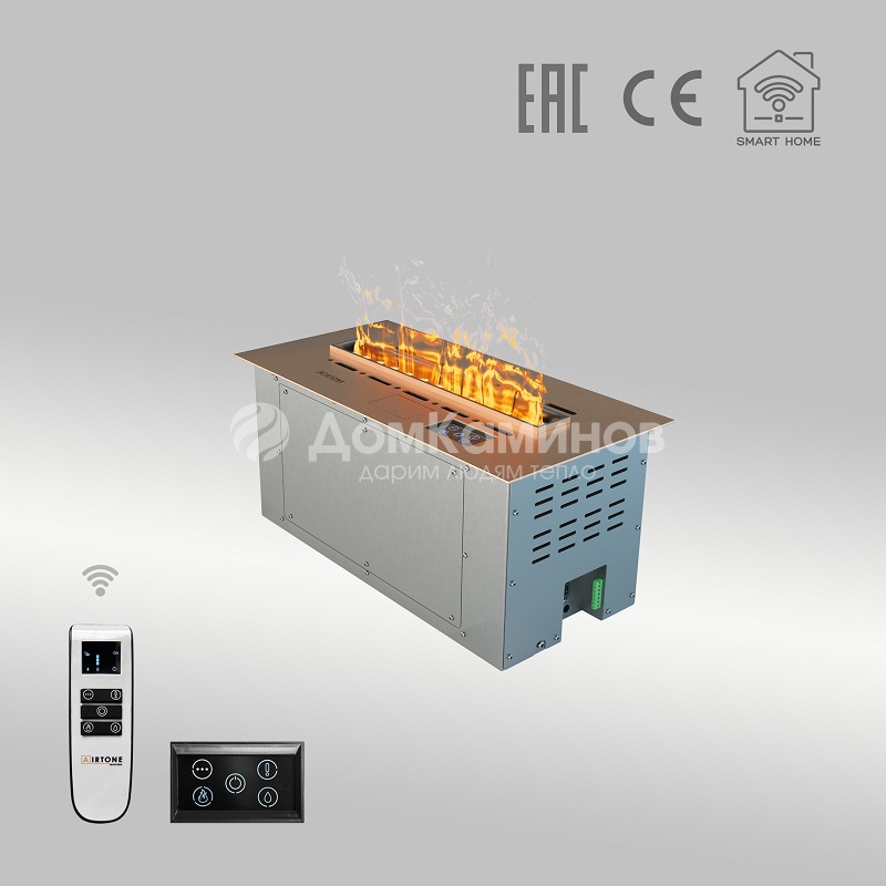 Автоматический паровой 3D электрокамин Airtone Vepo это уникальное решение. Камин создает сверхреалистичный эффект горения огня. Камин работает на воде, тем самым являясь абсолютно безопасным для детей и животных. Камин увлажняет помещение, что является большим плюсом, ведь недостаток влажности в помещении может стать причиной плохого самочувствия. Для работы камина нужно всего лишь включить его в розетку и нажать кнопку запуска на сенсорном экране или пульте дистанционного правления. Камин можно устанавливать рядом с телевизором и другими бытовыми приборами.