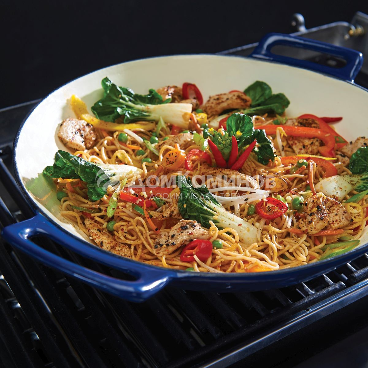 Прочное фарфоровое покрытие на чугунном основании делает этот вок для гриля одним из самых популярных аксессуаров. Его очень легко чистить; кроме того, он обеспечивает постоянную прожарку благодаря способности чугуна удерживать и равномерно распределять тепло. Диаметр – 36 см, глубина – 9.5 см.