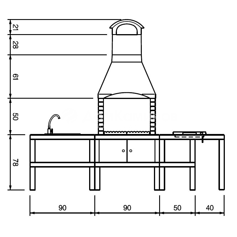 Кухонная программа Palazzetti изготовлена из Marmotech и включает:
