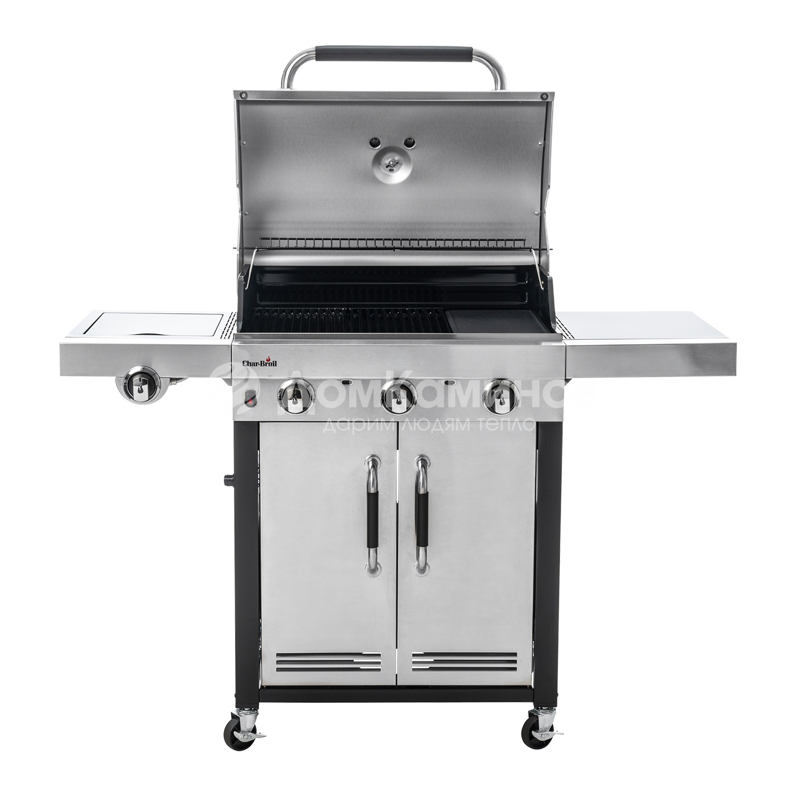 Char-Broil серии Advantage™ - доступные газовые грили с инфракрасной решеткой TRU Infrared™, которая обеспечивает равномерный жар по всей решетке и предохраняет от вспышек капающего жира в котле. Эта просторная модель с четырьмя основными и дополнительной боковой горелками прекрасно подойдет даже для самой большой компании.