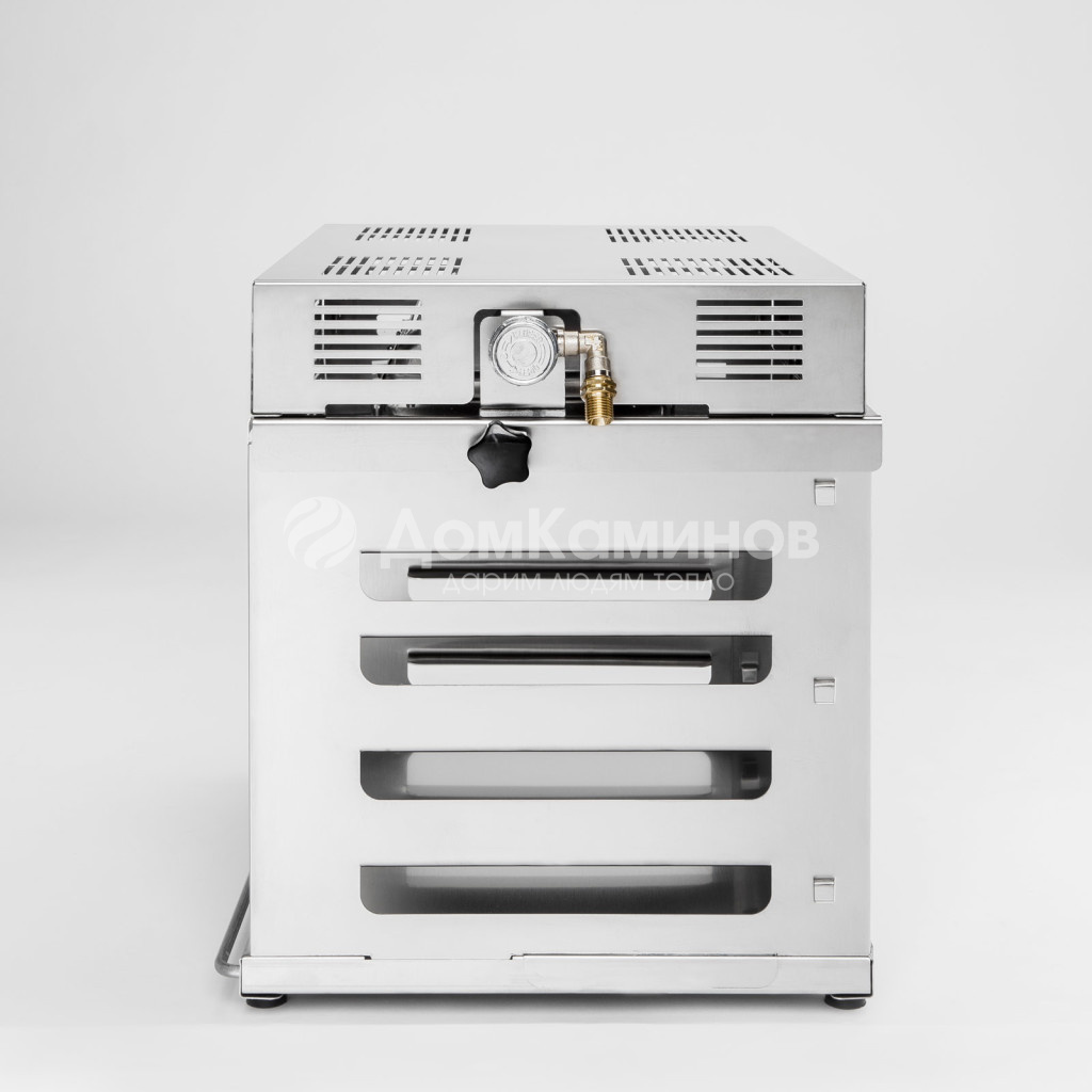 Благодаря инновационной конструкции гриля, в которой мощные инфракрасные газовые горелки распола- гаются над приготавливаемым блюдом, отсутствует дым, обычно возникающий при падении капелек жира на угли или раскаленные источники жара. Отсутствие дыма не только делает возможной эксплуатацию гриля в помещении, но и сохраняет первозданный вкус мяса или рыбы не «загрязняя» его запахом сгоревшего жира. WeGrill — гриль для настоящих гурманов, желающих уловить тончайшие вкусовые нотки в приготовленном блюде.
