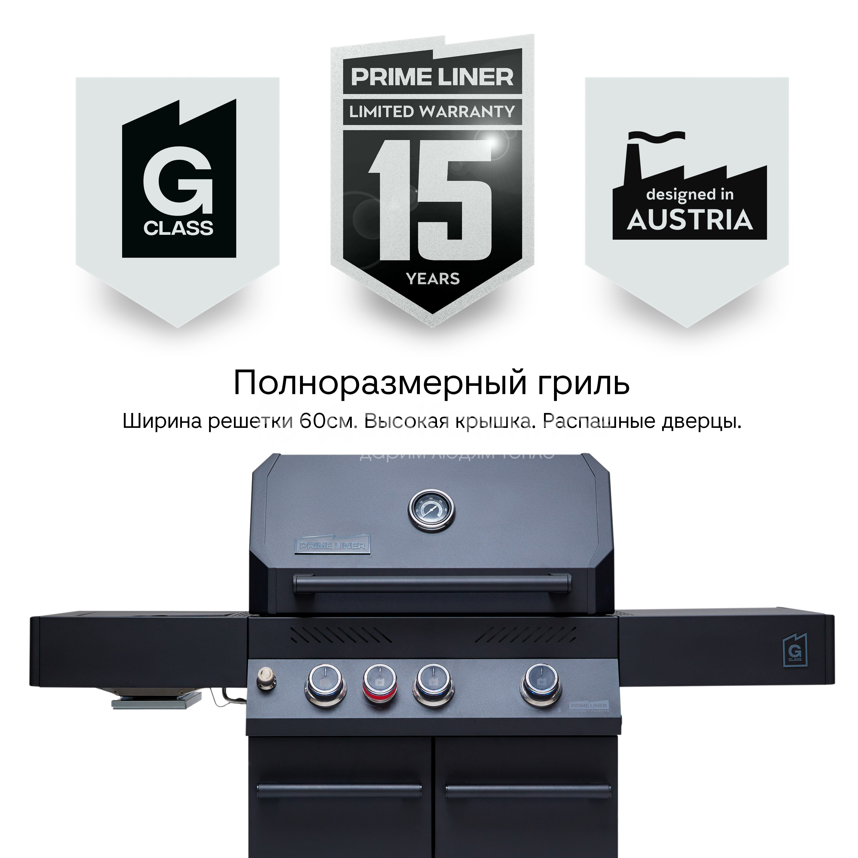 PRIMELINER G Class - это продвинутый полноразмерный гриль для большой компании. Современный дизайн, максимальная техническая оснащенность и качество говорят сами за себя. Производитель даёт 15-ти летнюю гарантию на все основные компоненты.