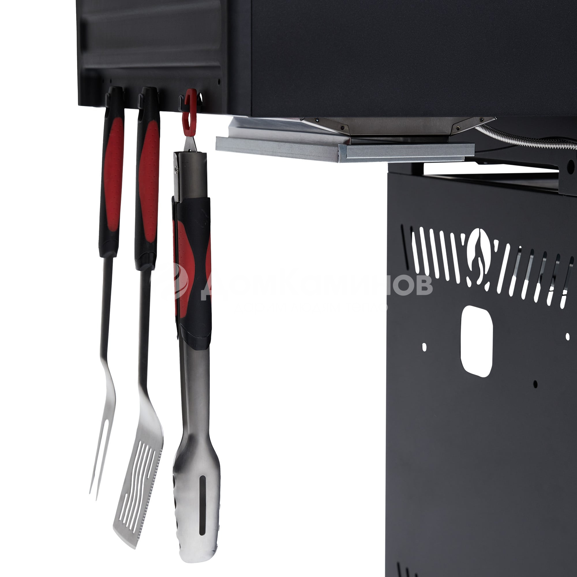 Плюс все классические фишки продвинутого гриля - двойная крышка котла с боковинами из литого алюминия, поддон жиросборника из нержавеющей стали, встроенные крючки для инструментов и прорезиненные колеса с фиксаторами.