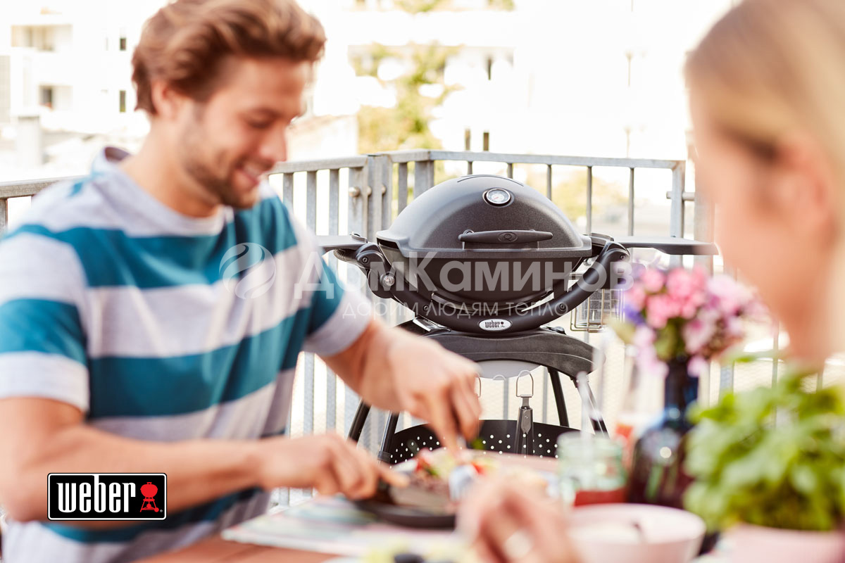 Являются отличительными характеристиками газового гриля Weber Q 1200 Black Line. Его небольшой вес позволяет его использовать как портативное кухонное устройство. Можно дополнительно приобрести специальную подставку-тележку, но данный газовый гриль-барбекю и без нее прекрасно чувствует себя на любой поверхности.