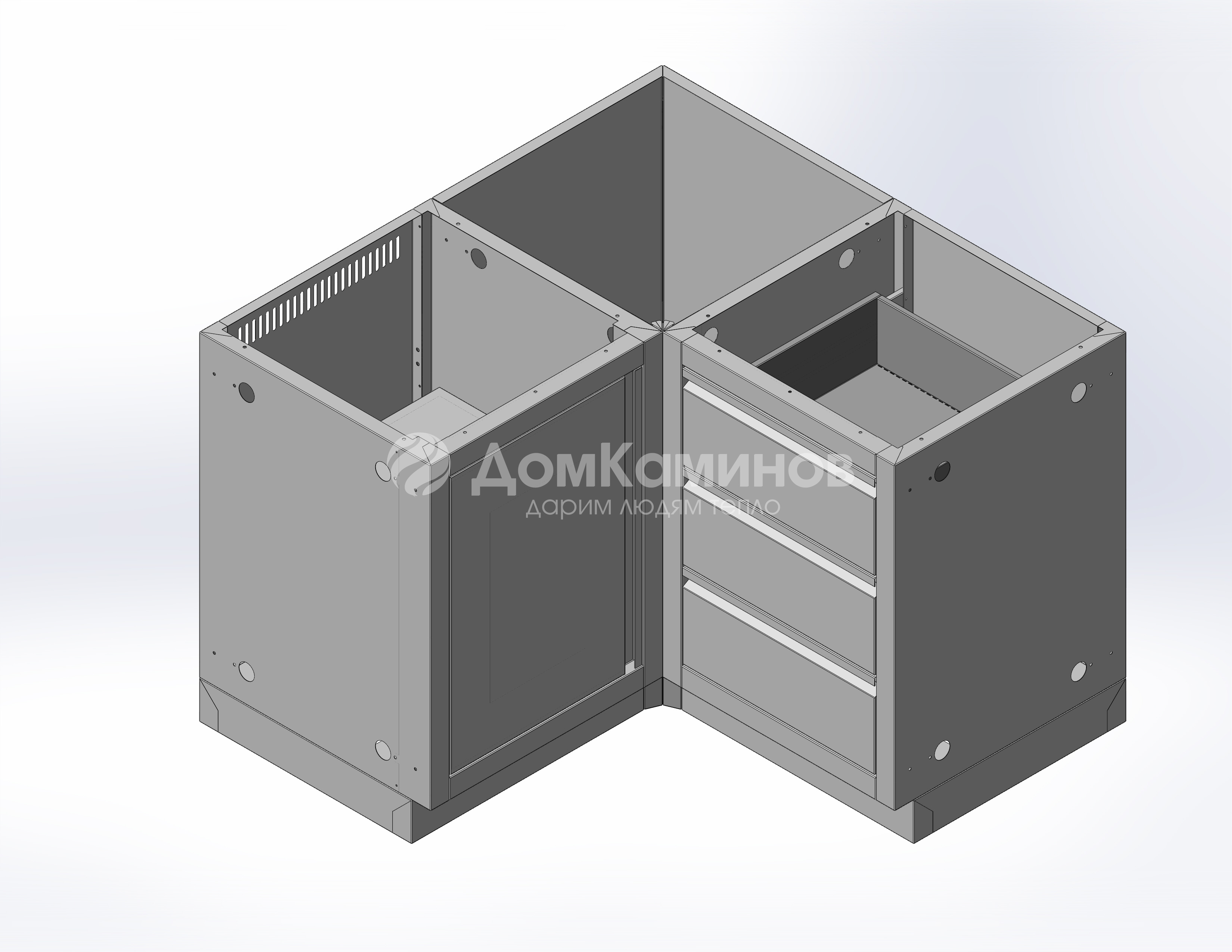 Все элементы изготовлены из высококачественной пищевой нержавеющей стали AISI304. Служит для соединения тумб под углом 90°. С внешней стороны соединенные панели образуют угол 90°