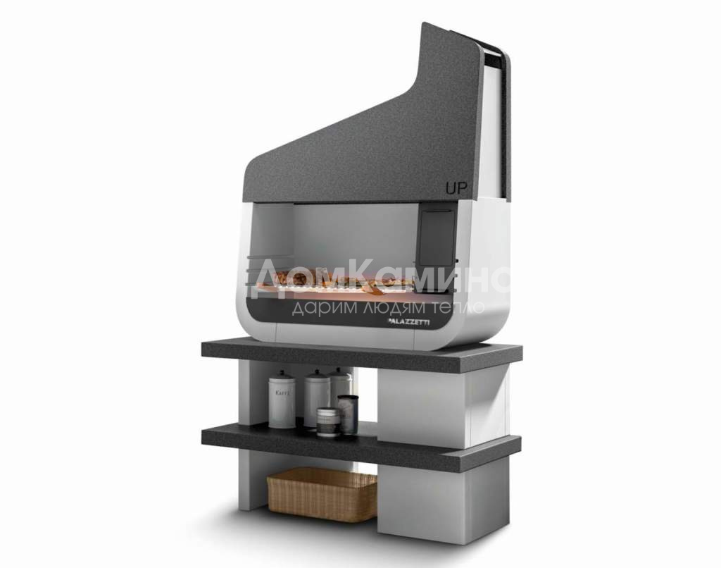 Дизайнерское барбекю (Marcarch design, Italy) с топкой из Marmotech, окрашенной кварцитовой белой краской и колпаком из цветного Marmotech с металлической вставкой.