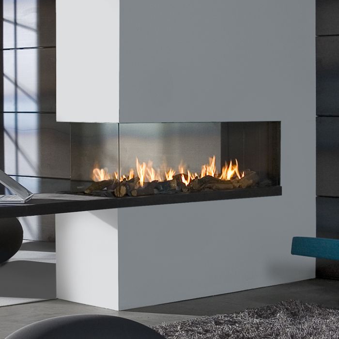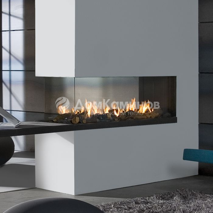 Впечатляющий трехсторонний газовый камин с реалистичной картиной огня. Современная горелка Step Burner®. Закрытая топка. Требуется подключение к коаксиальному дымоходу. Декоративное оформление топки дровами или галькой на выбор.