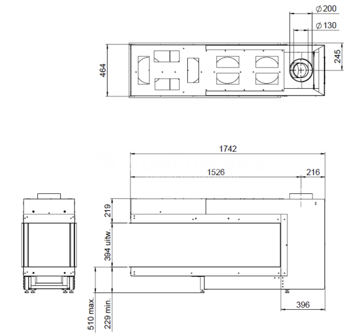 Диаметр дымохода: 130/150 мм