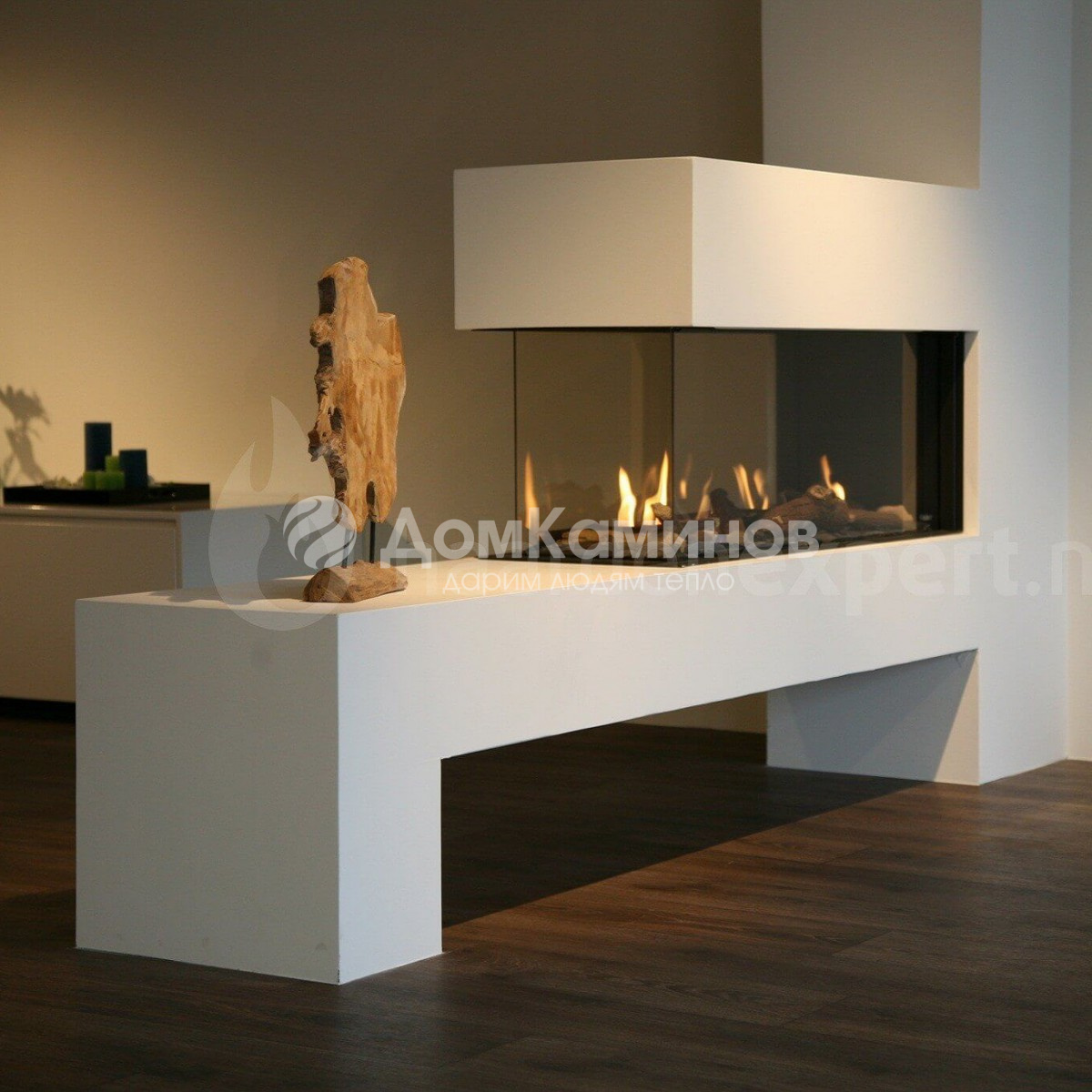 Впечатляющий трехсторонний газовый камин. Современная горелка Step Burner®. Закрытая топка. Требуется подключение к коаксиальному дымоходу.