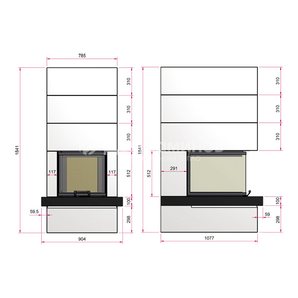 3-х сторонняя каминная топка Ekko U 55(67)51h