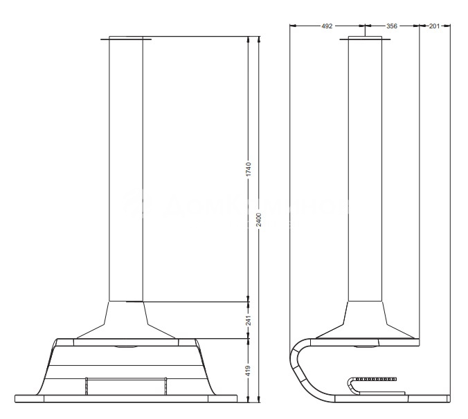 Диаметр дымохода: 250 мм