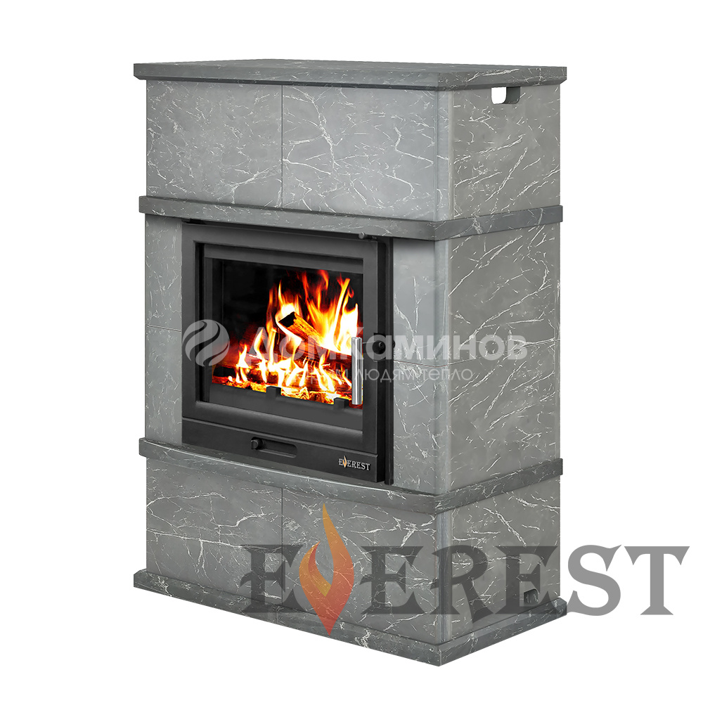 Камин EVEREST Талькохлорит представляет собой комплект из топки EVEREST и наружной облицовки из натурального камня