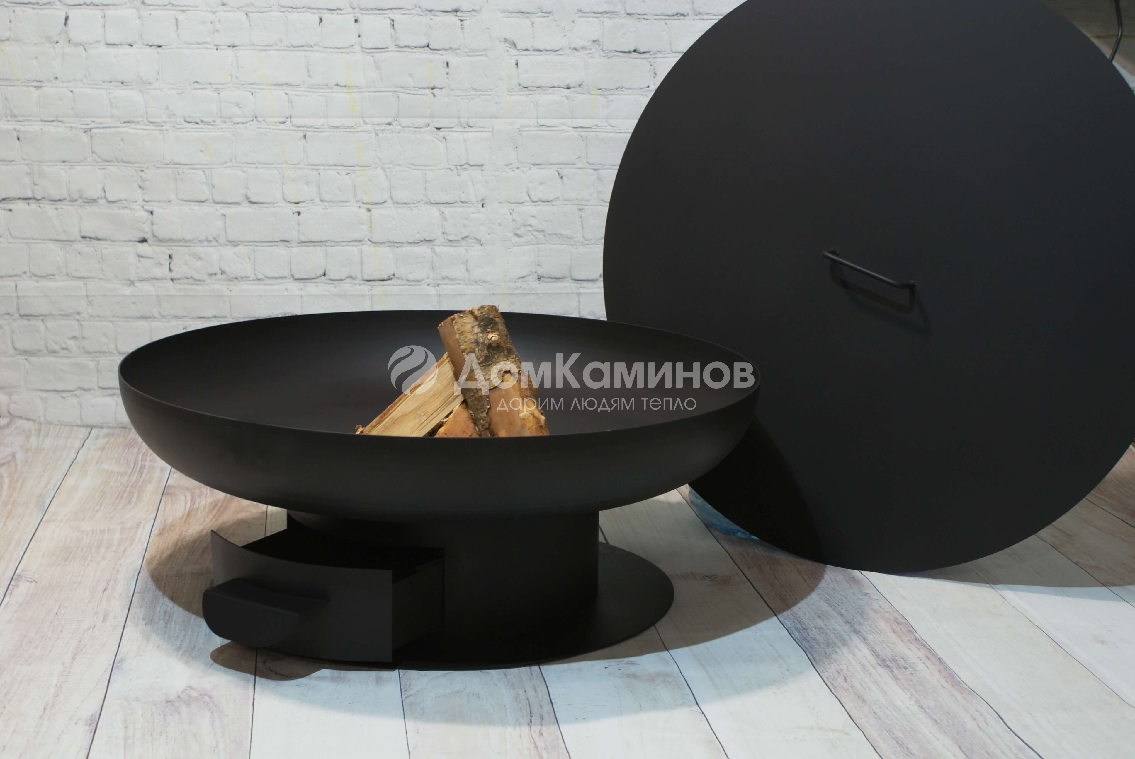 Уличный дровяной очаг с крышкой в комплекте диаметром 80см и встроенным зольником для удобного извлечения золы. Встроенный колосник из 5 мм стали обеспечивает наилучшее горение дров, Очаг окрашен термоэмалью CERTA. Дополнительно вы можете укомплектовать Ваш очаг крышкой, она защитит очаг от осадков и разноса золы по участку.