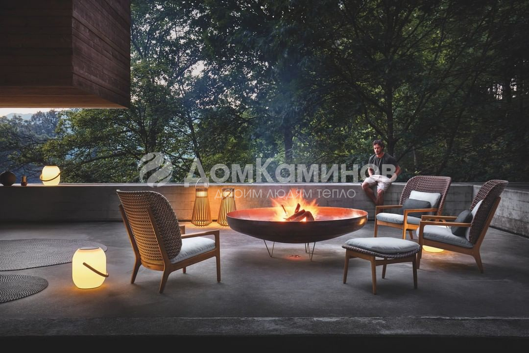 Очаг создан в минималистичном стиле из 3-4 мм конструктивной стали (в зависимости от диаметра). Внушительный размер и строгий дизайн позволяет организовывать древесину, простым и естественным образом подчеркивая пространство, ощущение свободы и легкости. Изящное основание символизурует легкость и непринужденную обстановку. Очаг легко перемещать при помощи удобных и оригинальных ручек. Имеет дренажное отверстие и заглушку для него. Высокий борт обеспечивает защиту от ветровых потоков и предотвращает заслет золы.