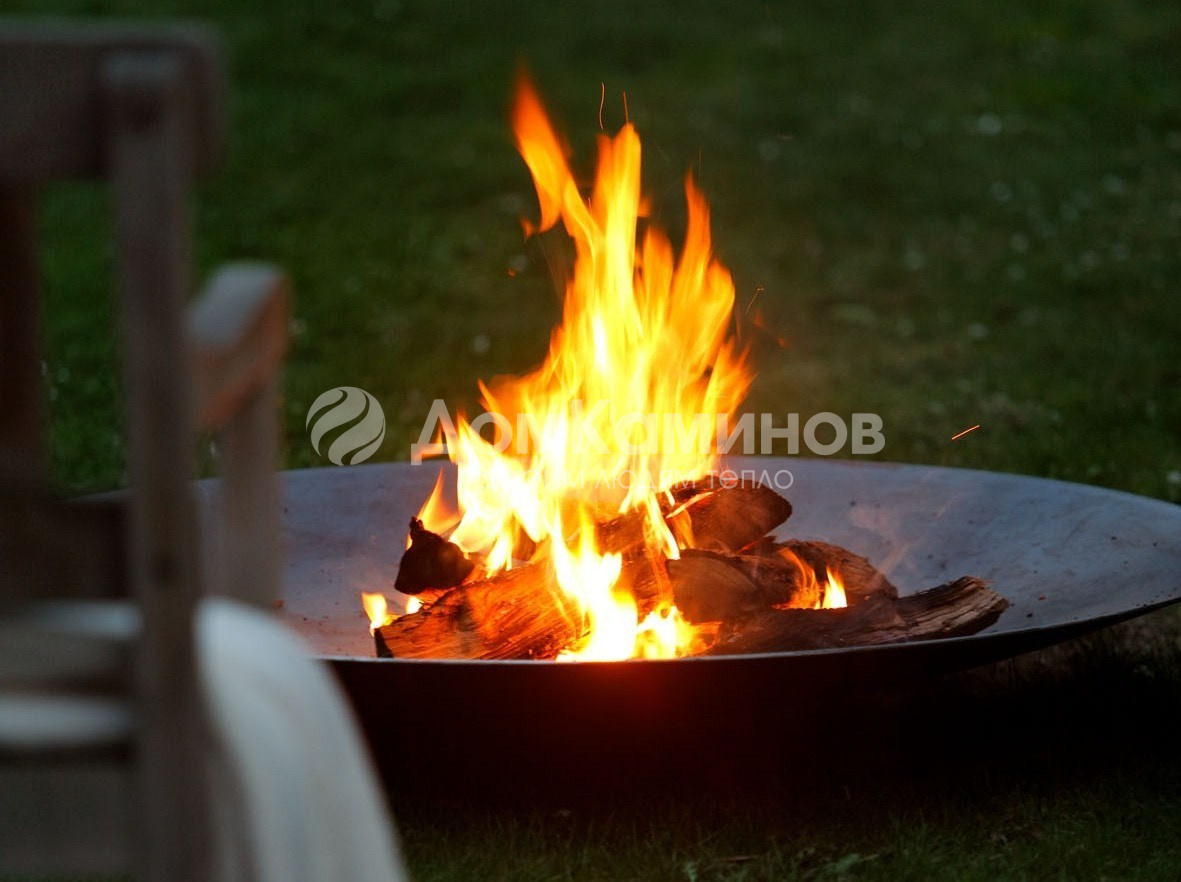 Толстостенный очаг для костра из 4 мм стали без основания, с дренажным отверстием и заглушкой к нему. Благодаря своей геометрической форме атмосферные осадки не накапливаются в очаге, что положительно сказывается на долговечности очага. Для дополнительной защиты от коррозии костровая чаша обработана термоэмалью, способной выдерживать высокие температуры. Гарантия от сквозной коррозии стали не менее 10 лет.