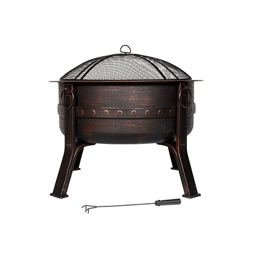 Полный горящих поленьев, очаг Brava является пылающим центром любого мероприятия, где можно собраться с друзьями и насладиться мерцающим светом и успокаивающим теплом. Необычный дизайн, прочная круглая чаша, установленная на подставке с четырьмя крепкими ножками. Бронзовая отделка с декоративными заклепками создает ощущение прочности и надежности. Чаша выполнена из температуроустойчивой стали высокого качества. У "Бравы" имеется крышка с сеткой, которая используется для большей безопасности как искрогаситель.