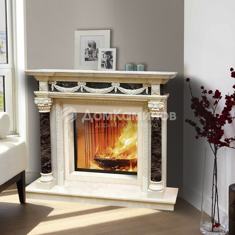 Портал для камина ArteVero Orpheus изготовлен из мрамора Crema marfil и Emperador, добываемого на юге Италии. Модель Orpheus, как и все порталы Artevero, классической формы «П». Контрастные цвета мрамора станут идеальным фоном для прихотливой игры пламени. Портал соответствует максимальным размерам под топку 94 x 90 см.