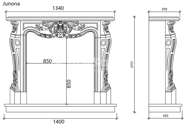Портал для камина ArteVero Junona Onyx – это декоративная «рамка» внешней части каминной конструкции, обрамляющая каминные топки. Модель Junona Onyx соответствует топкам: 90 x 87 см.