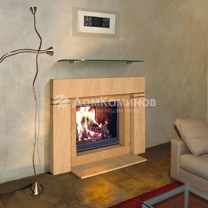 На картинке представлена стандартная модель камина. При желании клиента камин по данному дизайну можно изготовить по индивидуальным размерам и под топки разных производителей. Выбор камня (породы дерева) не ограничен.