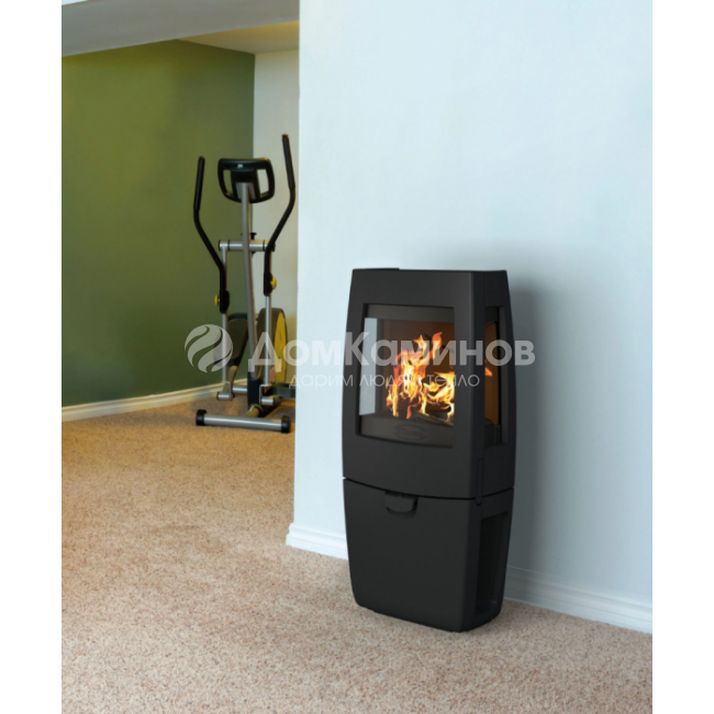 Печь вполне обеспечивает пожаробезопасность и экологичность помещения. Как дополнительную опцию можно купить термозащитный экран. Дно топки выполнено из огнеупорного материала. Корпус модель покрыт черной эмалью, что делает ее использование подходящим для многих интерьеров, в том числе и для классического. Печь имеет боковые дверцы из огнеупорного стекла, что позволяет наблюдать за горением пламени. Не большие габариты изделия и обтекаемые формы позволят всегда найти подходящее место для печи в любом помещении. В комплекте идет ящик для золы.