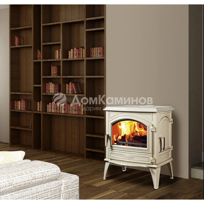 Печь имеет дверь для боковой загрузки дров, вдоль длинной стороны.