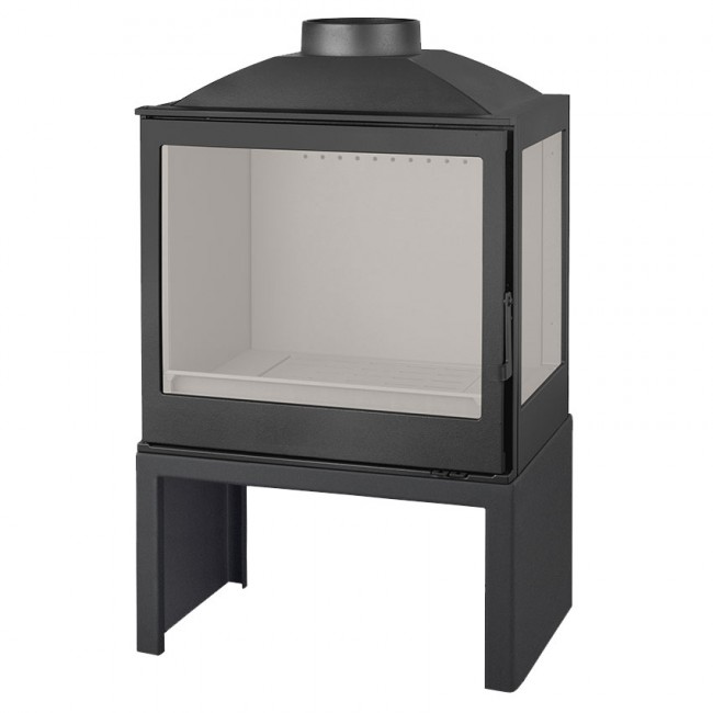 Чугунная печь с ножками. Фронтальное стекло + боковое стекло справа. Цвет - черный.