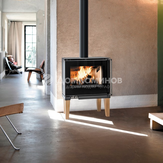 Длинная легко откывающаяся ручка, двойное сгорание, витрокерамика, деревянные ножки.